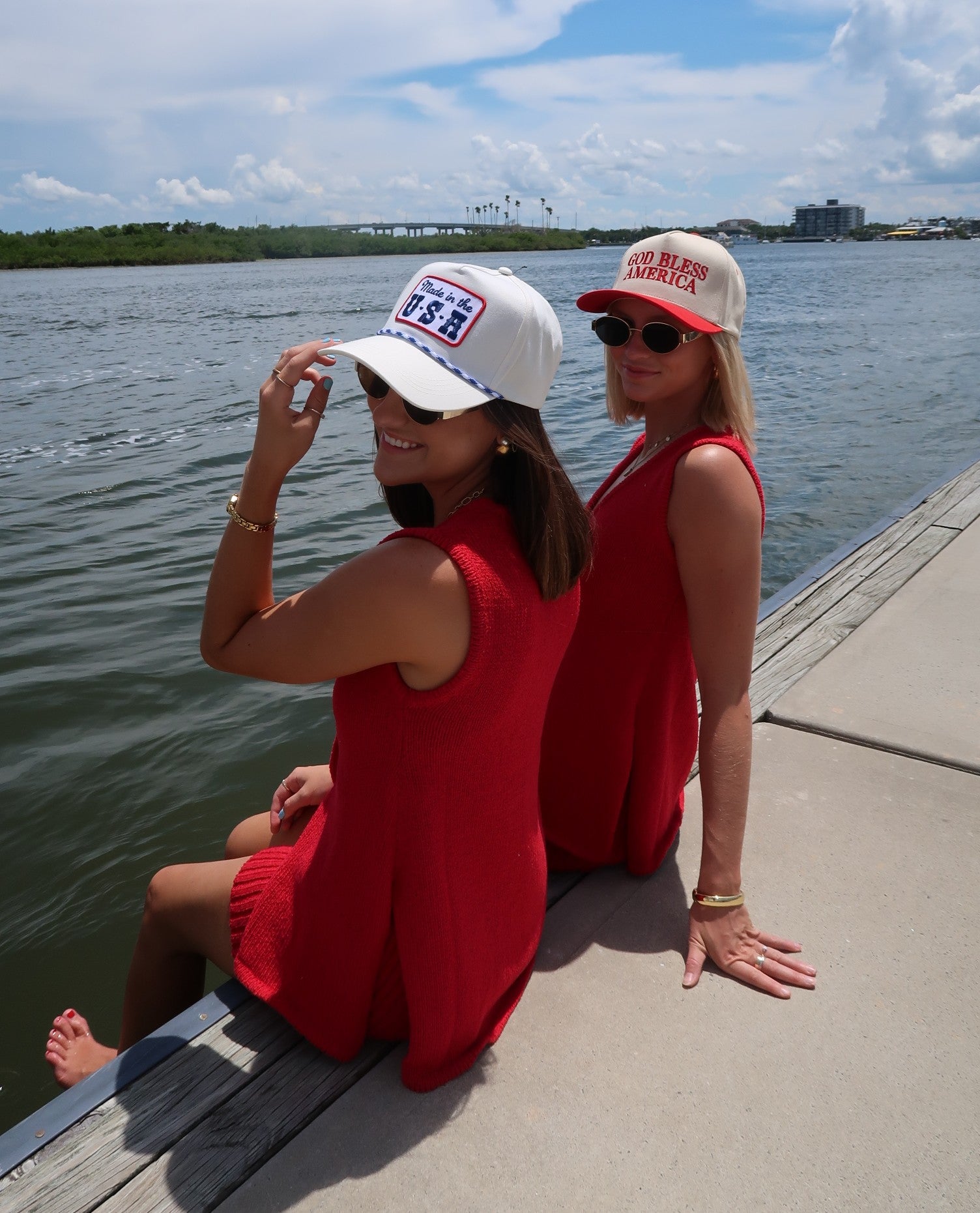 A bold and breezy knit set featuring a sleeveless button-up vest and high-waisted ribbed shorts in vibrant cherry red. Perfect for sun-soaked days and seaside strolls.