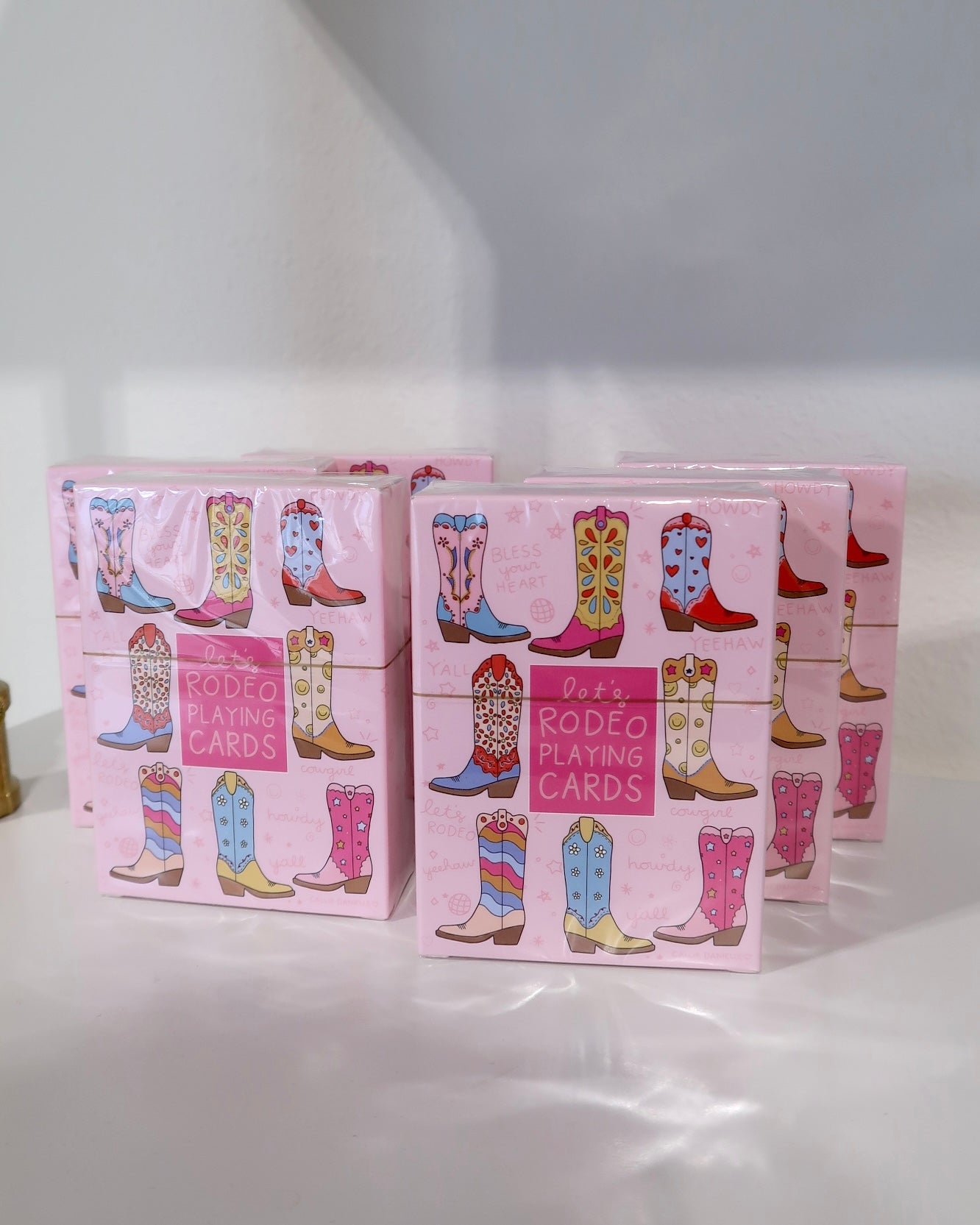 Get ready for a wild ride with Let’s Rodeo Playing Cards. These fun and vibrant pink cards bring the spirit of the rodeo to your next game night or hangout. With a playful design that captures the fun and excitement of the rodeo, they’re perfect for any occasion — whether you're playing poker, rummy, or just shuffling for fun. Add a little western flair to your card games and let the good times roll!