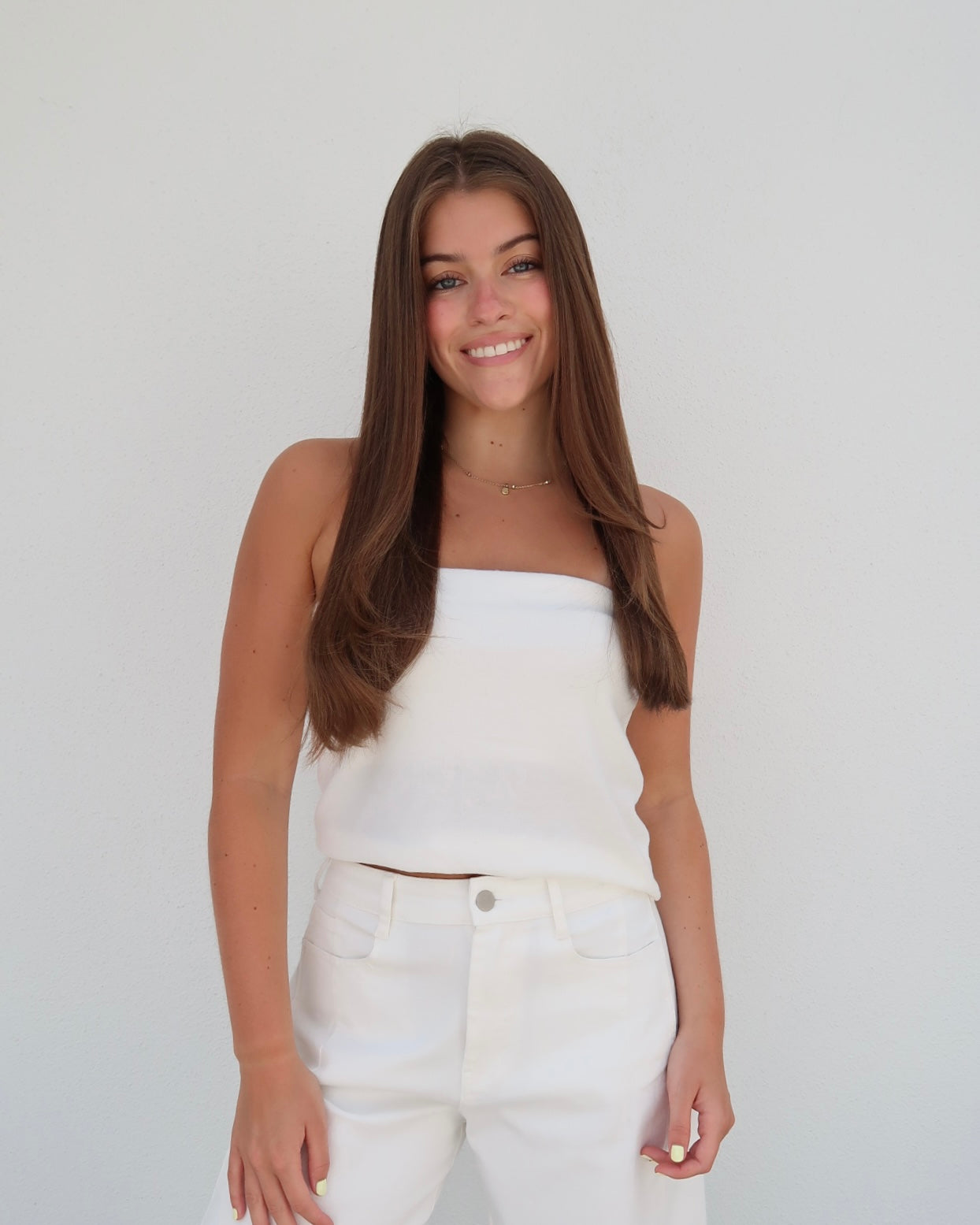 Feminine, flattering, and effortlessly flirty—the Sands Top is your new go-to for warm, sunkissed days. This strapless pastel pink or white option features a built-in bra for comfort and support, while the sleek silhouette and soft hue give it that dreamy beachside glow. Pair it with flowy linens or your favorite denim for a look that feels like golden hour on the coast.