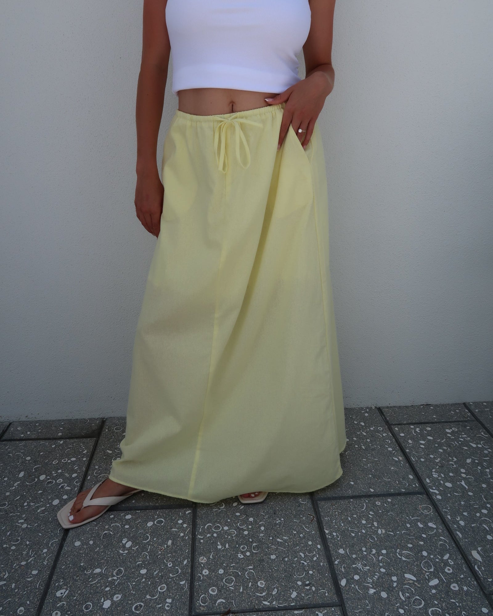 Simple and serene, the Salt Tide Skirt is an easy pull-on style with a laid-back coastal feel. Crafted in a muted seafoam blue, it features a soft drawstring waist and roomy side pockets. The straight, flowy cut offers all-day comfort—perfect for barefoot beach days or casual coffee runs.