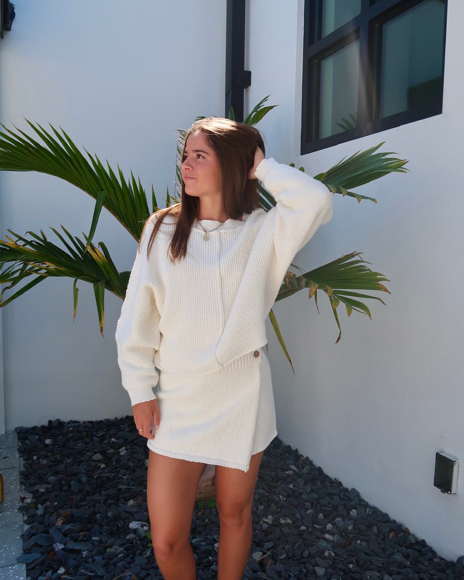 Cozy meets polished in the Sandbar Set — a dreamy cream knit duo made for crisp beach mornings and fireside evenings. The long-sleeve top brings just the right amount of slouch, while the matching skort adds a playful, put-together twist. Soft, flattering, and endlessly versatile, this set is perfect for lounging in style or stepping out with ease. Wear it as a set or mix and match — either way, it’s a staple.