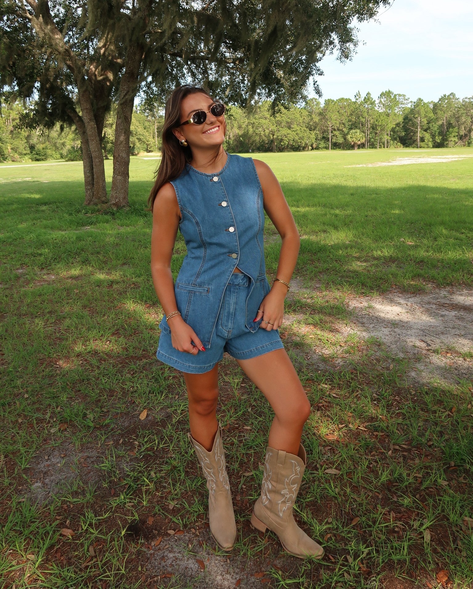 This sleeveless denim set blends coastal ease with vintage charm. Light, laid-back, and perfect for breezy days by the shore or strolling the boardwalk.