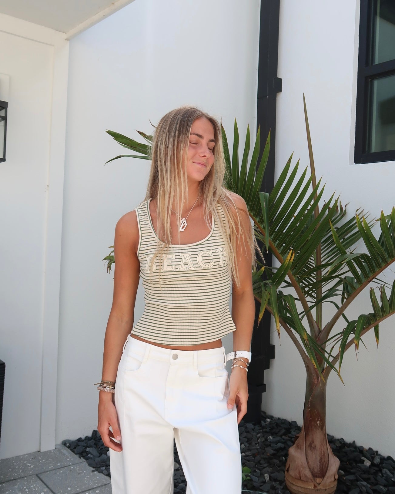 Bring the beach vibes wherever you go with the Tropical Vibes Tank. Featuring a fresh green and beige color combo and a bold 'Beach' graphic, this tank is the perfect balance of relaxed and fun. Whether you’re lounging by the shore or running errands, it’s a laid-back piece that adds a touch of coastal spirit to any outfit.